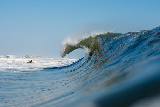 Debido a su configuración de arena poco profunda, los Outer Banks fueron conocidos en su día por los capitanes de barco como el "cementerio del Atlántico". Pero hoy, y entre ciertos aficionados a los bancos de arena, las islas barrera de Carolina del Norte son conocidas como un escenario privilegiado para los tubos de beachbreak. Si alguna vez has visto en una revista a un surfista de la Costa Este completamente equipado (con capucha, escarpines, guantes de langosta y todo) encaramado en un pozo marrón turbio, es muy probable que se trate de los Outer Banks. Pero como la hilera de islas sobresale como un alevín retorcido, no son solo las frías tormentas del noreste las que encienden los Outer Banks. La zona recibe el impacto de los sistemas de baja presión, independientemente de si la dirección del oleaje es sur o norte. Aunque el verano puede ser bastante tranquilo, no se necesitan las tormentas más fuertes para que los Outer Banks mejoren. Incluso las olas pequeñas ofrecen olas divertidas debido a la limitada extensión de la plataforma continental, que se descompone con el oleaje.